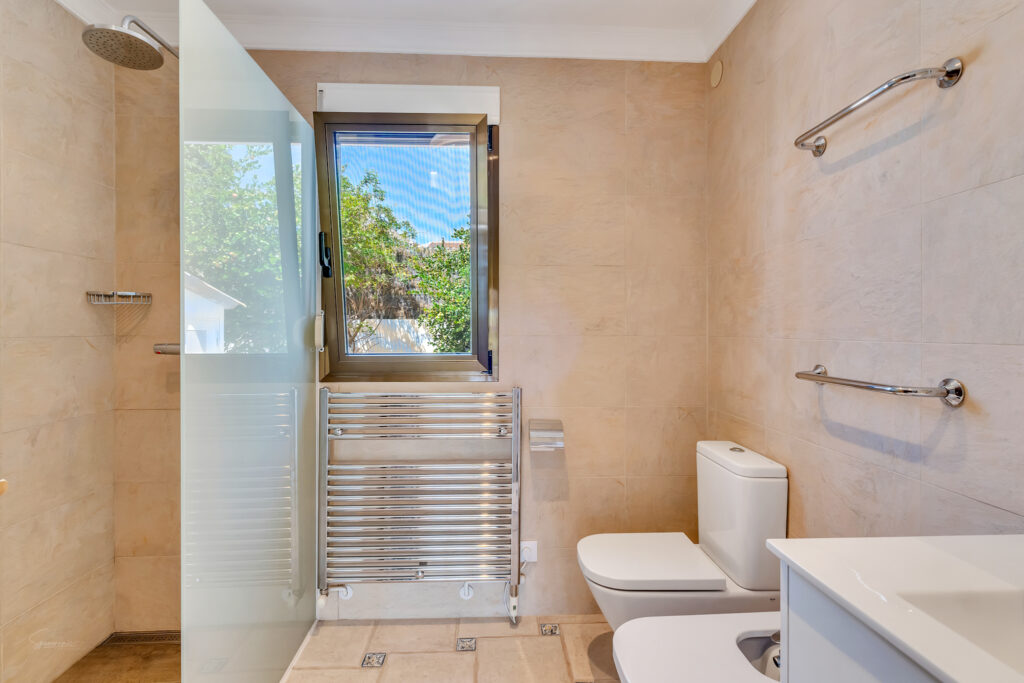 Gelegen op de eerste etage een ruime slaapkamer ensuite met uitzicht over de Montgó en de Montgó vallei. De ensuite badkamer is voorzien van bad/douche, wastafel, toilet en bidet.